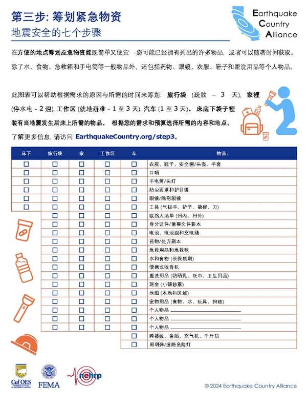 Earthquake Preparedness Resourcess (Chinese Simplified)