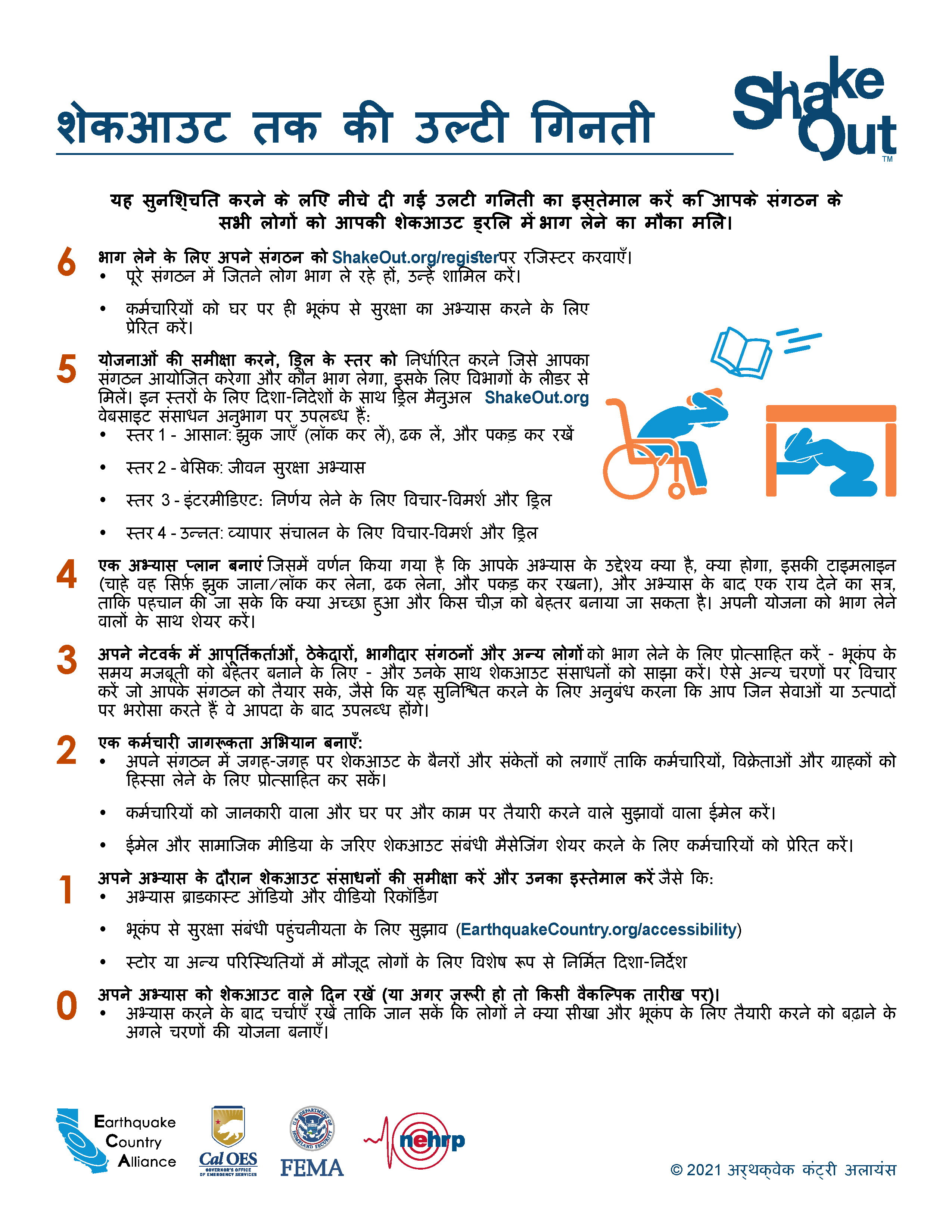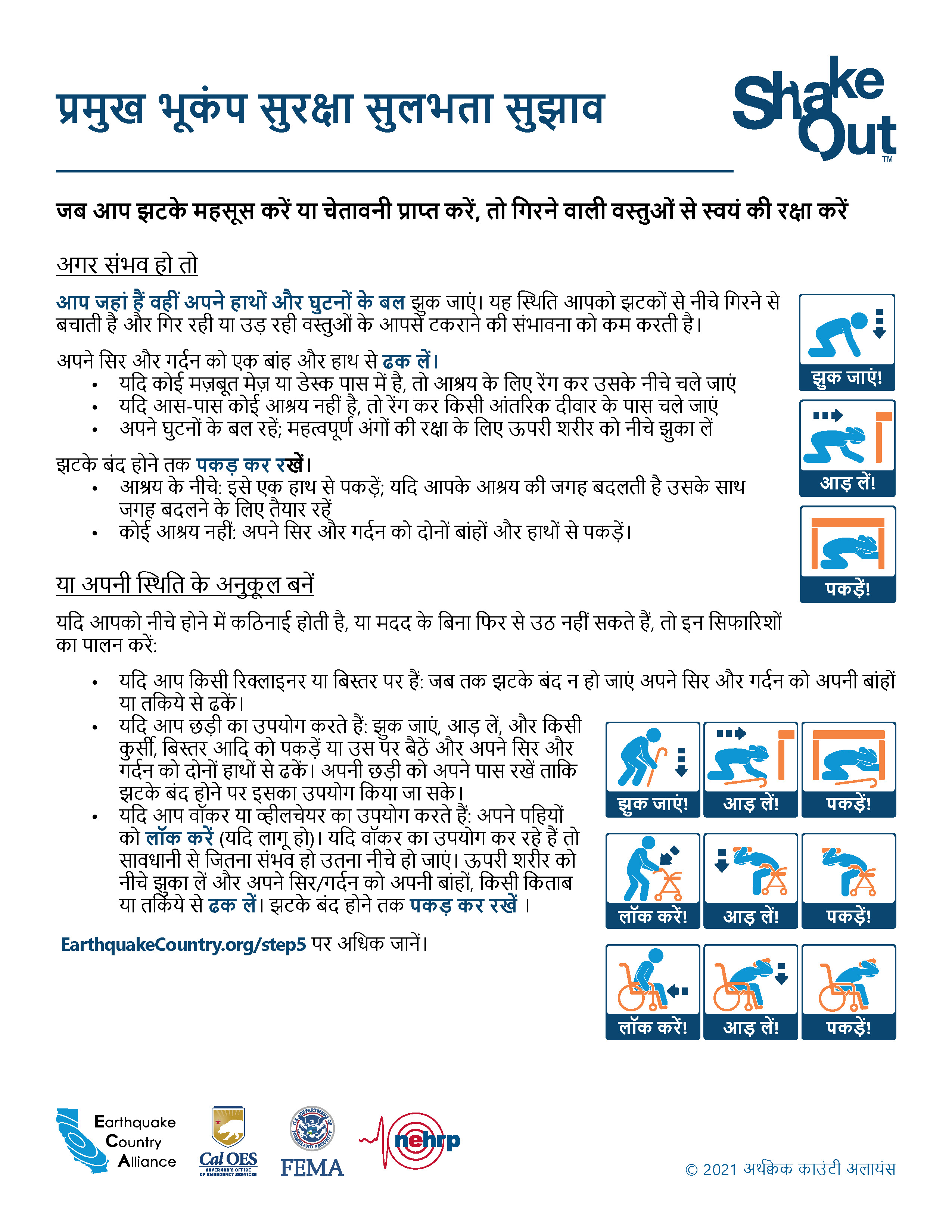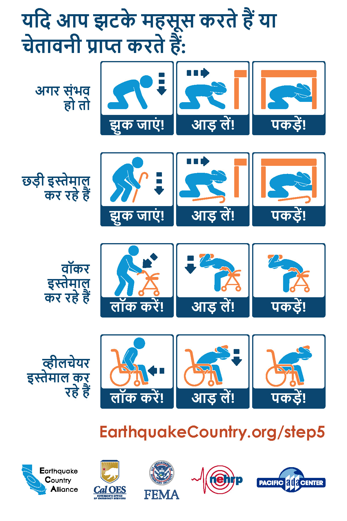 ECA has earthquake safety resources available in Hindi, listed below. Each document is configured with alt-text and correct read order (for people who use screen reader tools).