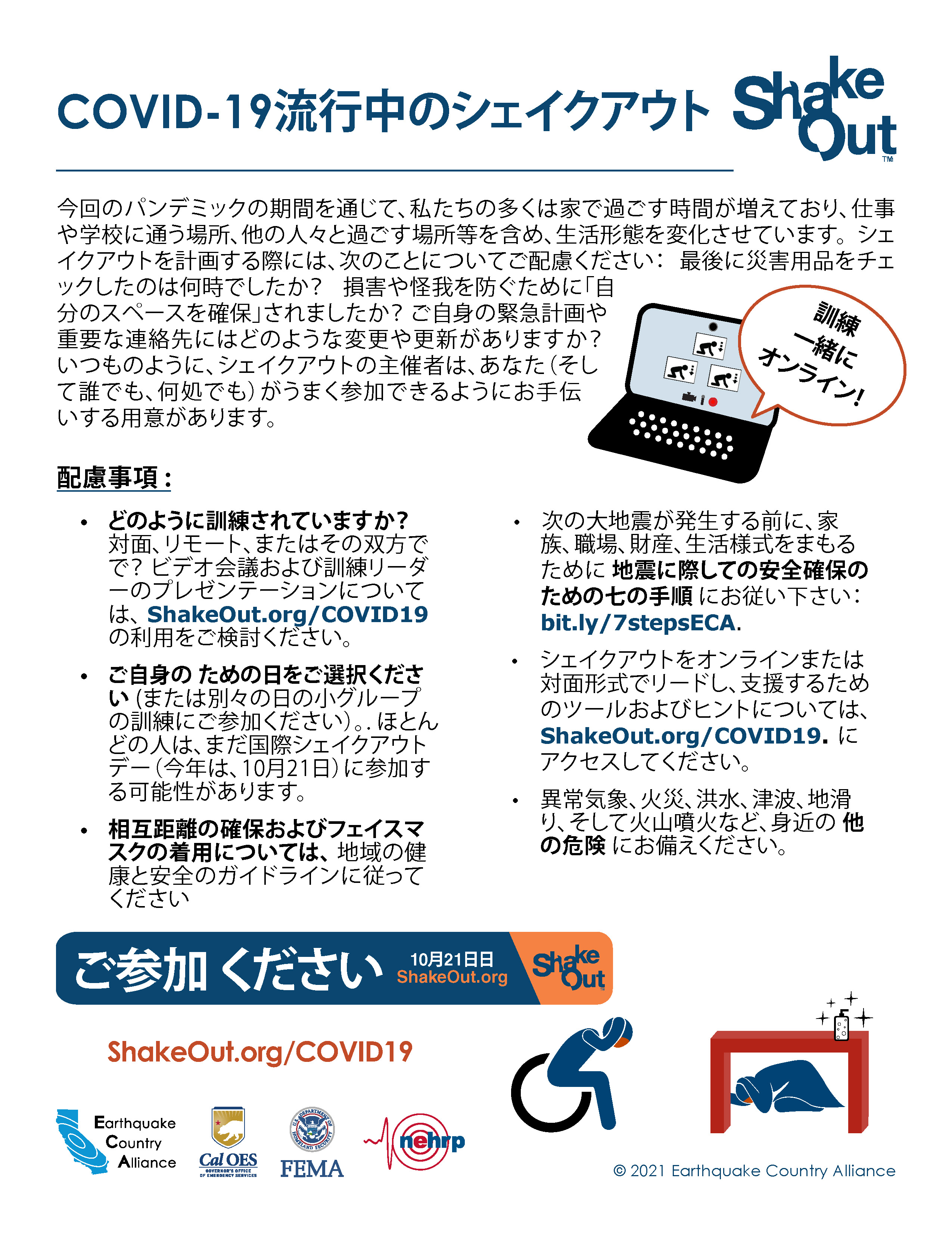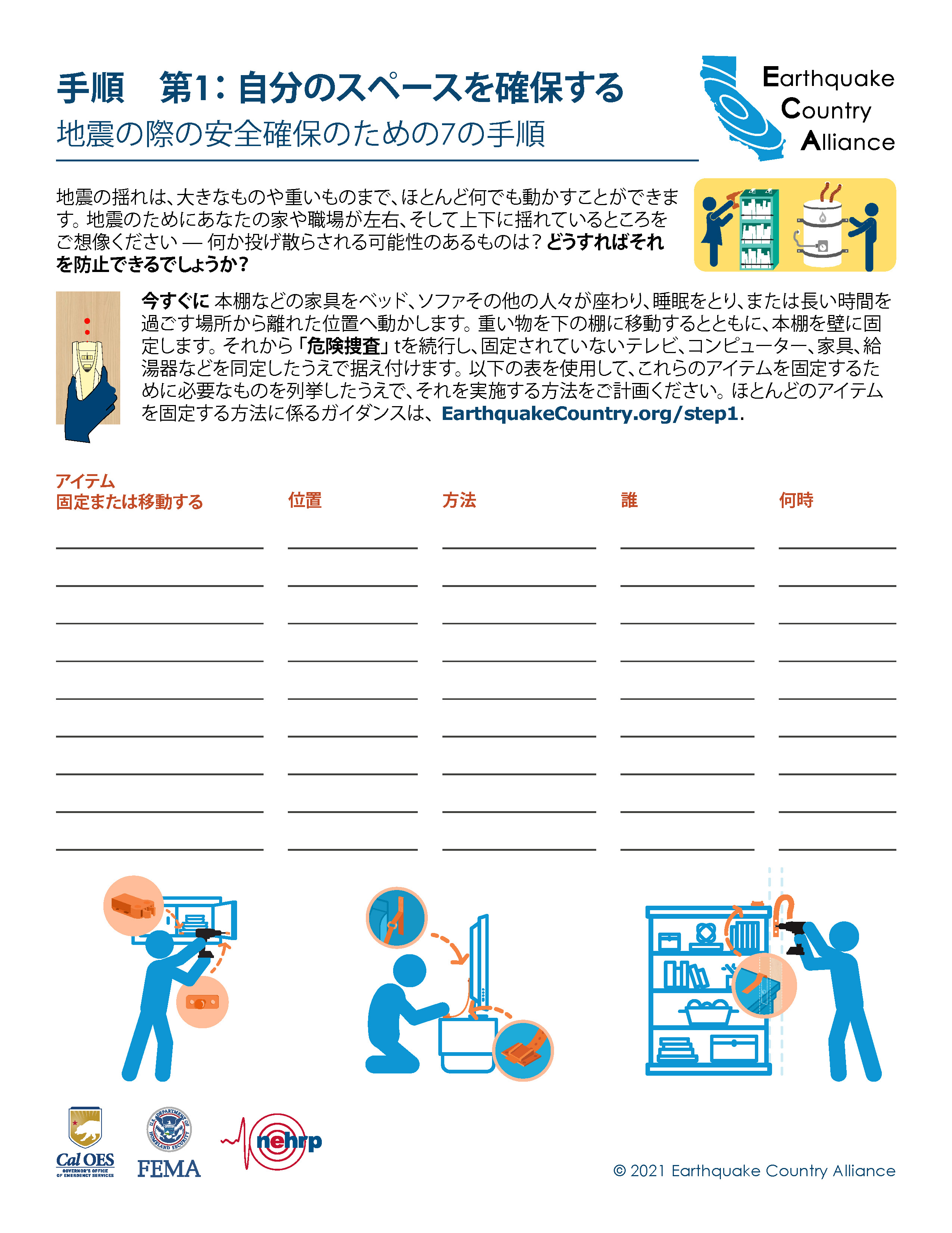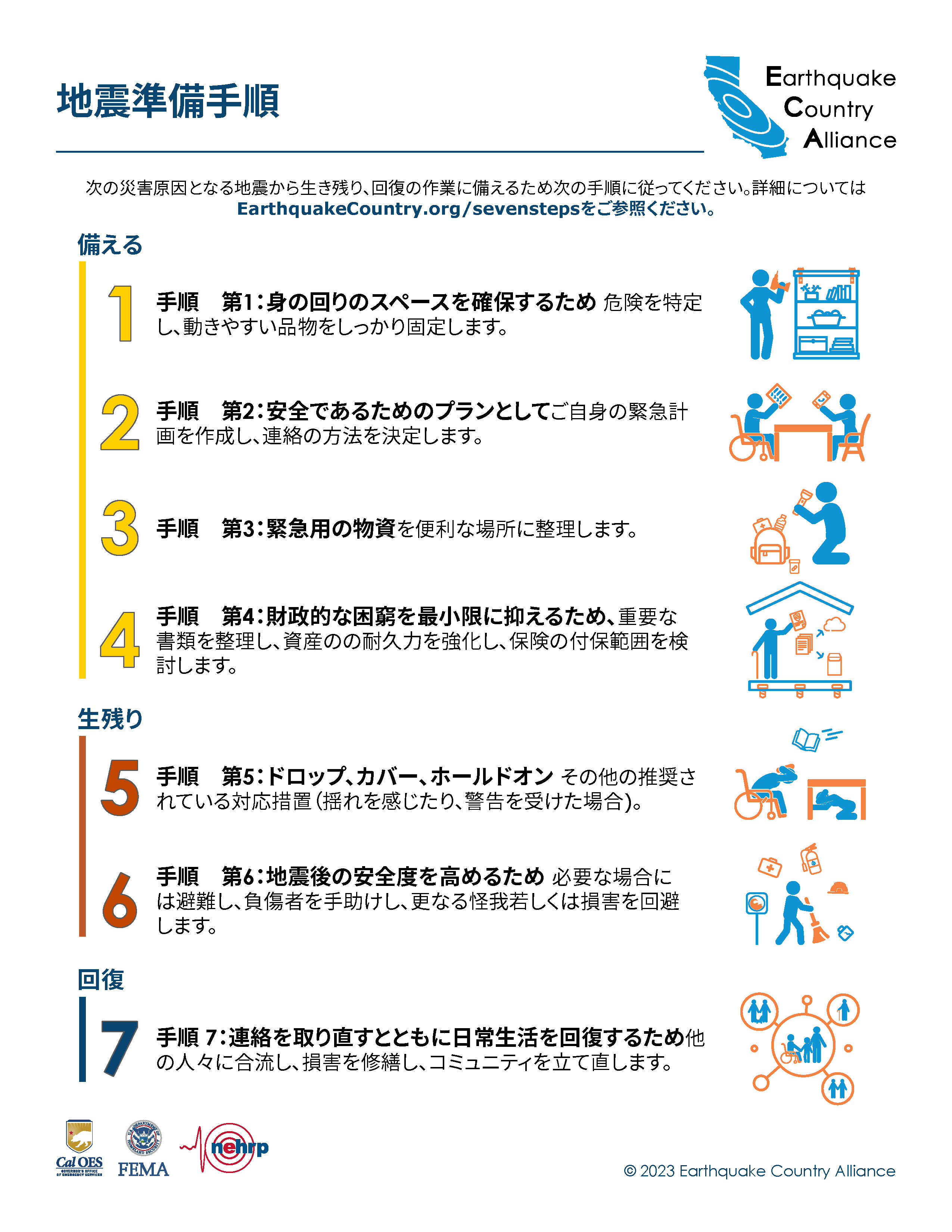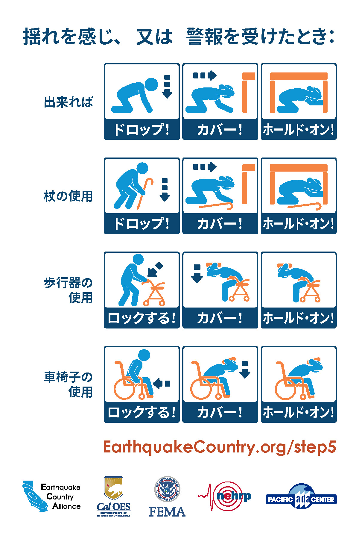 ECA has earthquake safety resources available in Japanese, listed below. Each document is configured with alt-text and correct read order (for people who use screen reader tools).