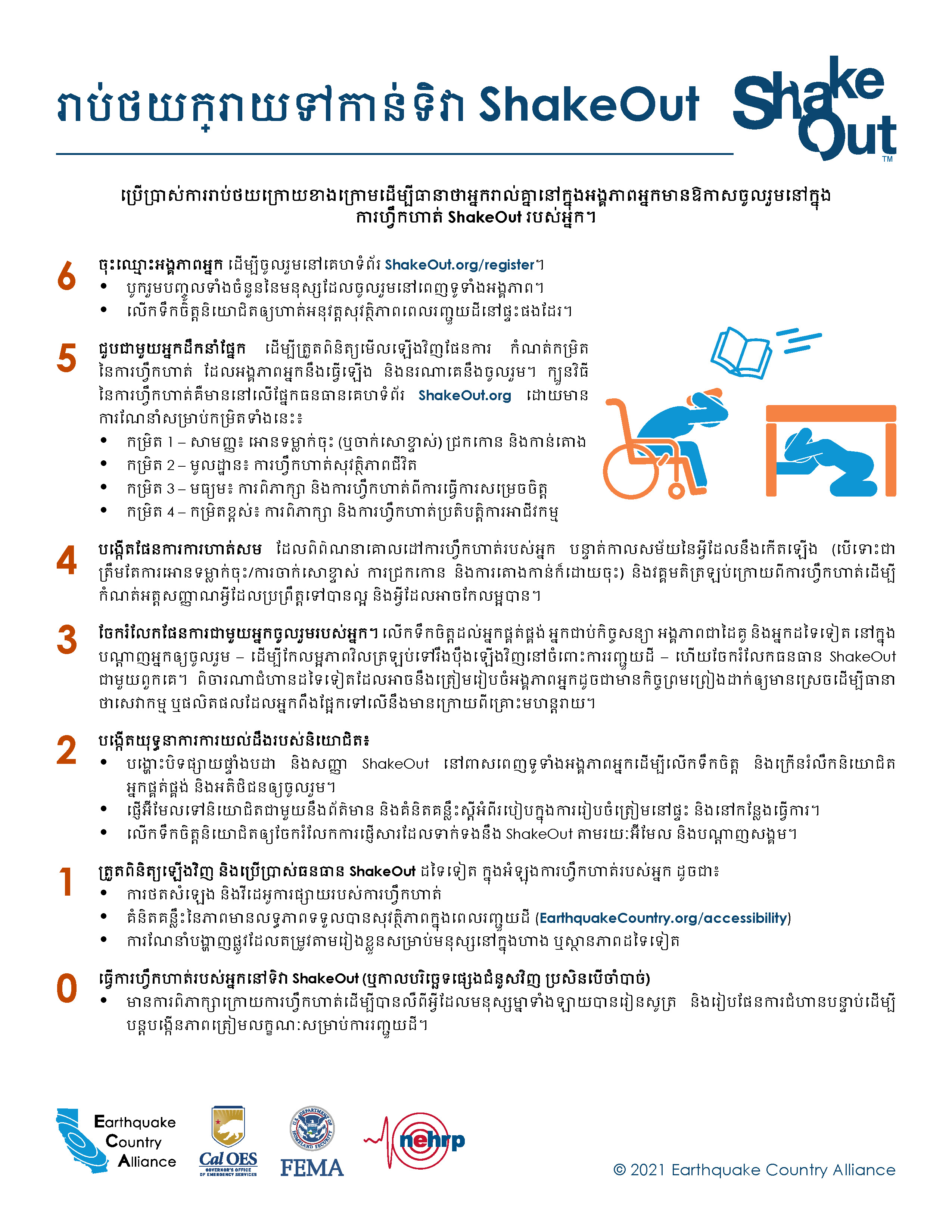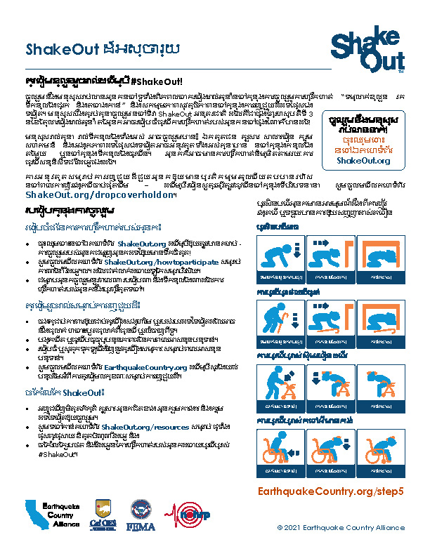 ECA has earthquake safety resources available in Khmer, listed below. Each document is configured with alt-text and correct read order (for people who use screen reader tools).