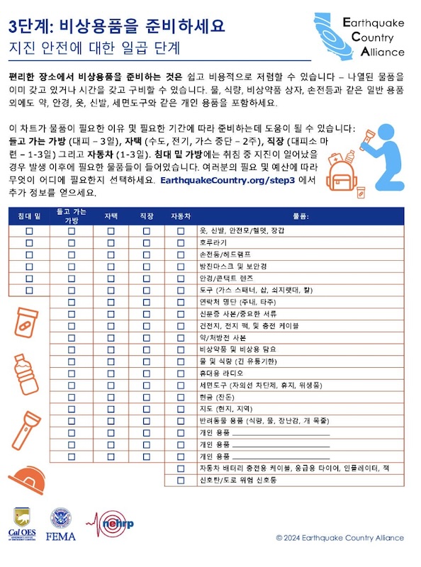 Earthquake Preparedness Resources (Korean)