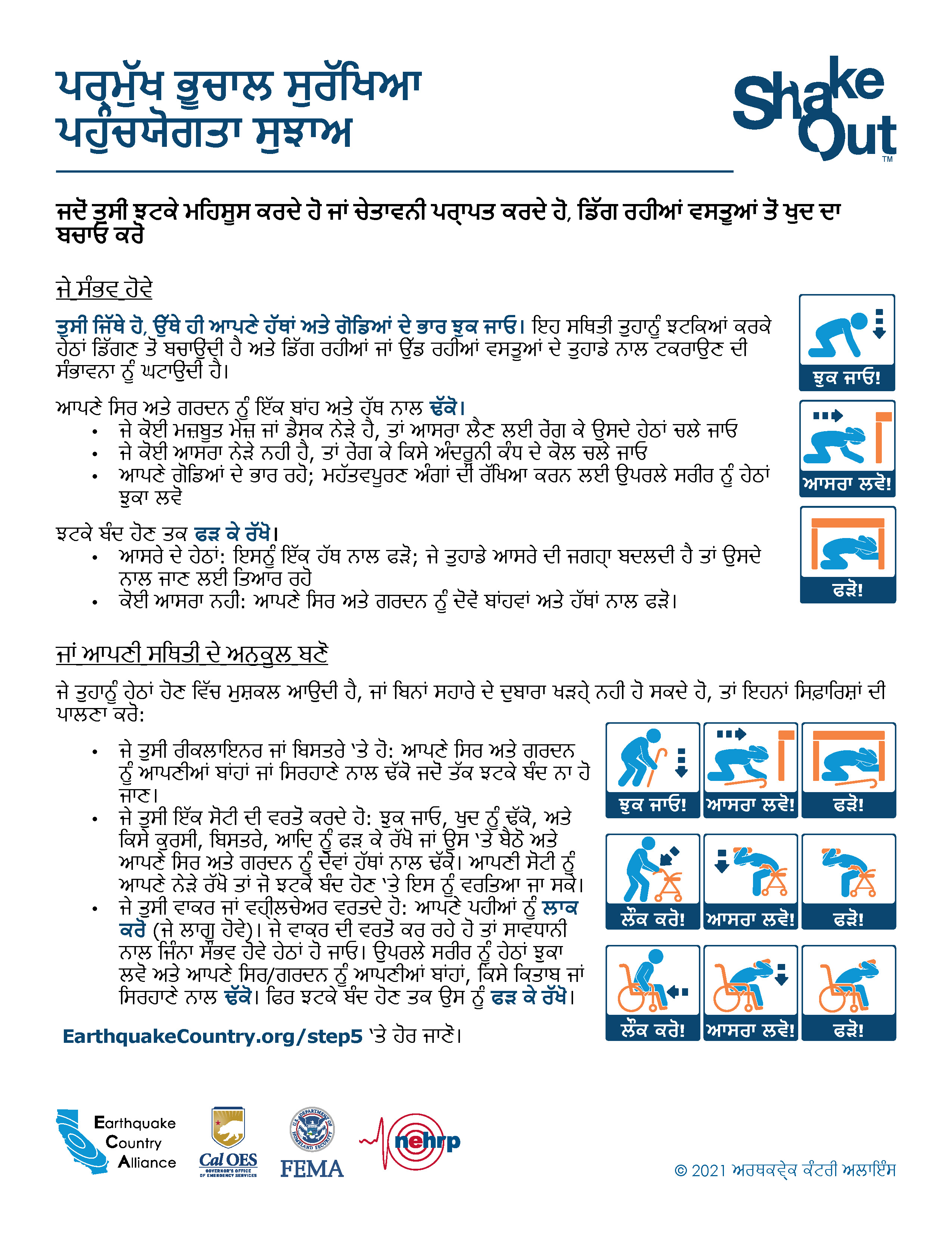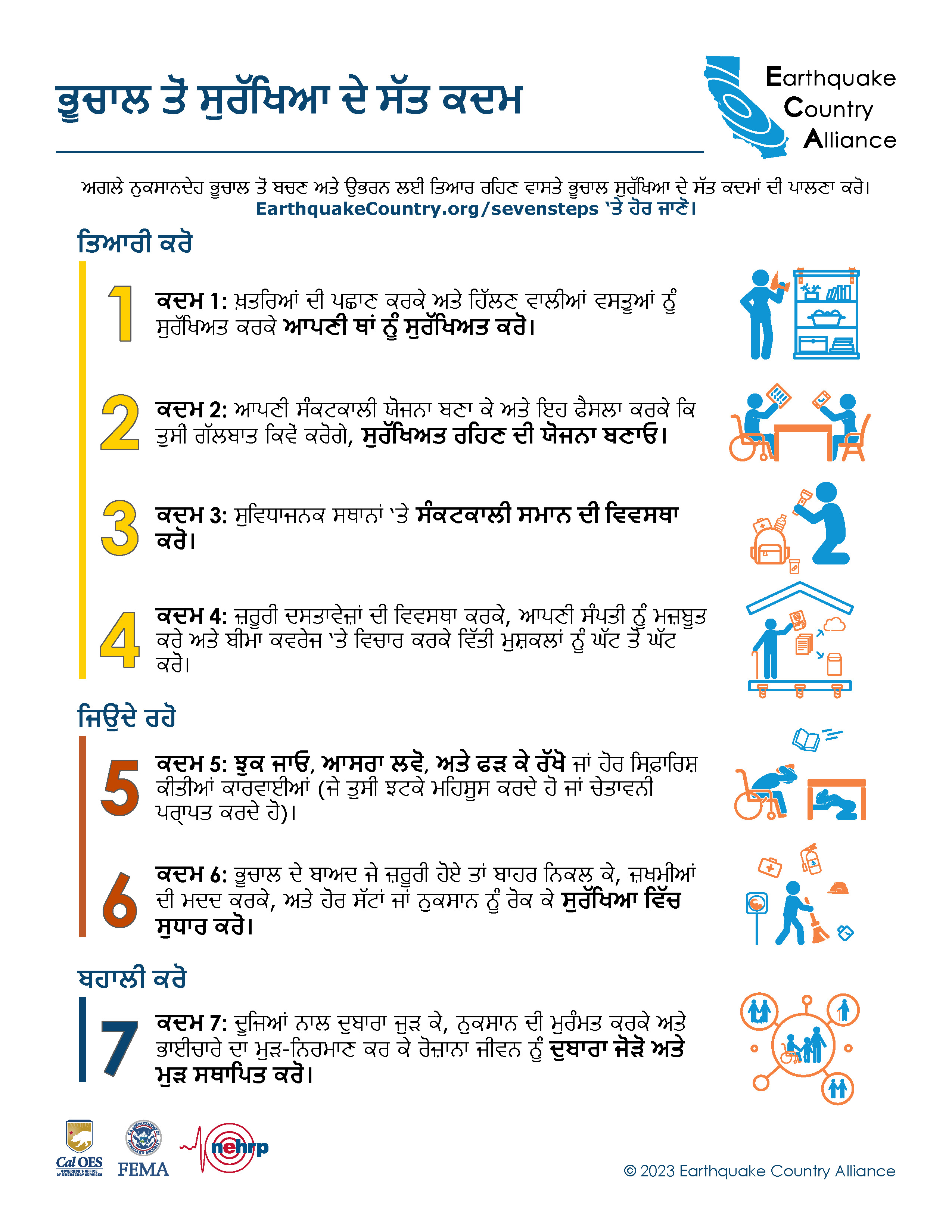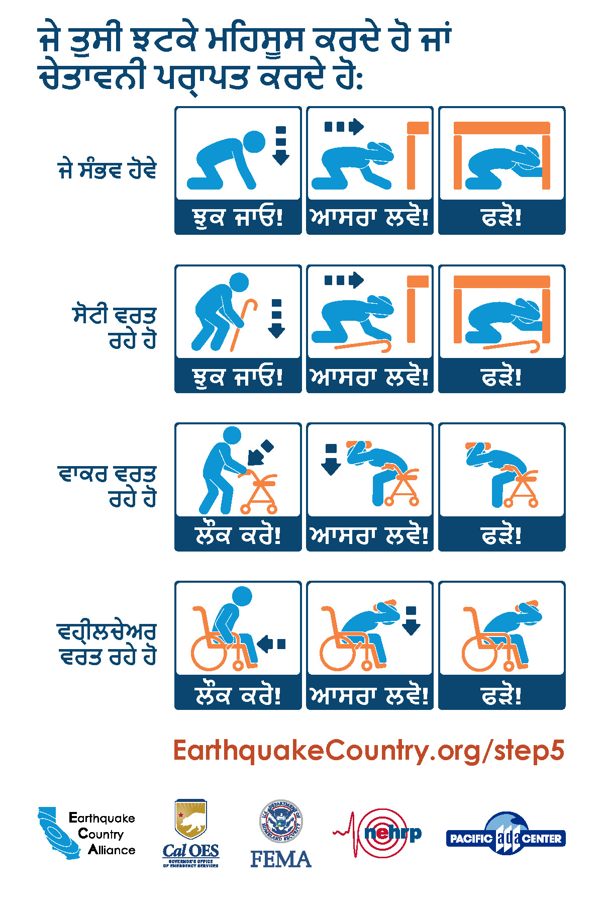 ECA has earthquake safety resources available in Punjabi, listed below. Each document is configured with alt-text and correct read order (for people who use screen reader tools).