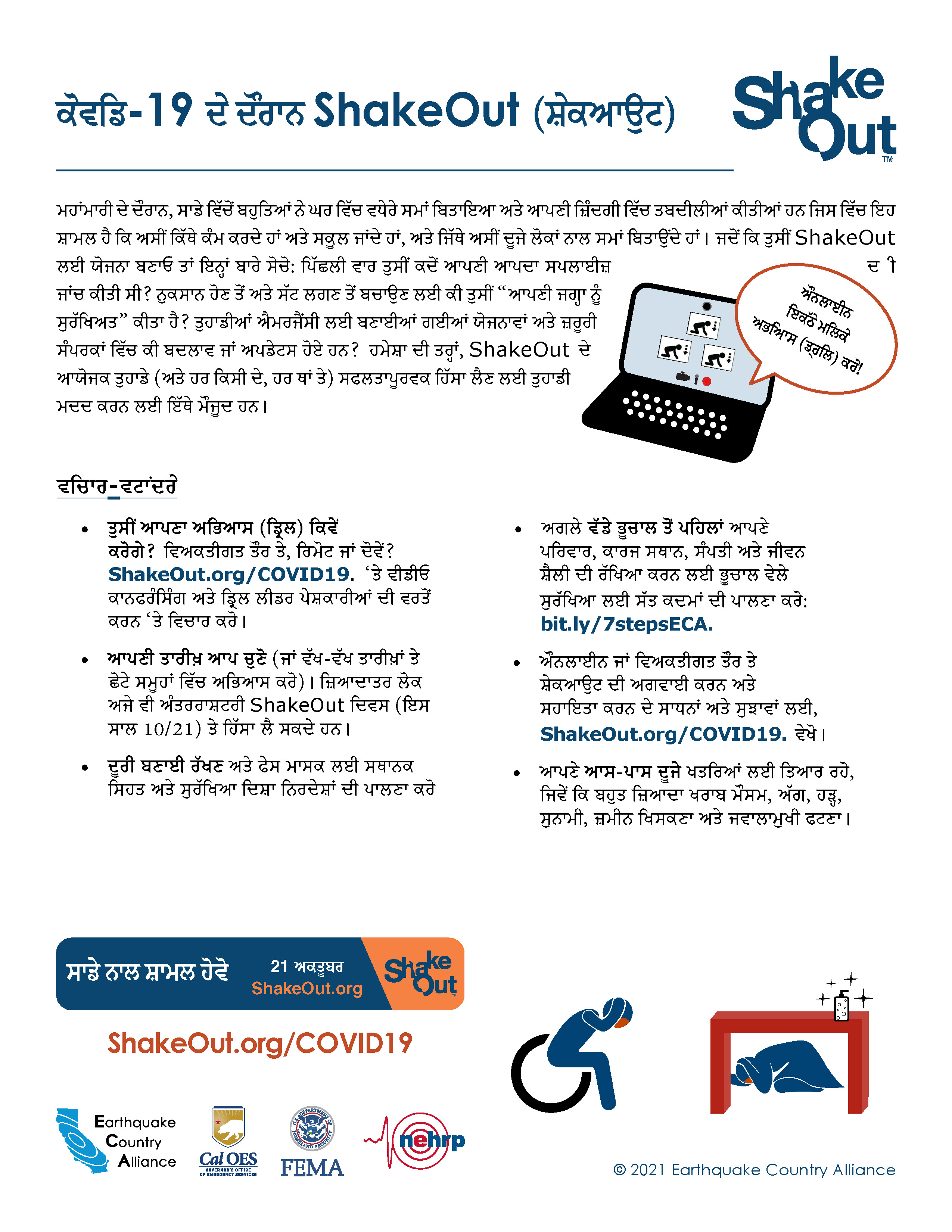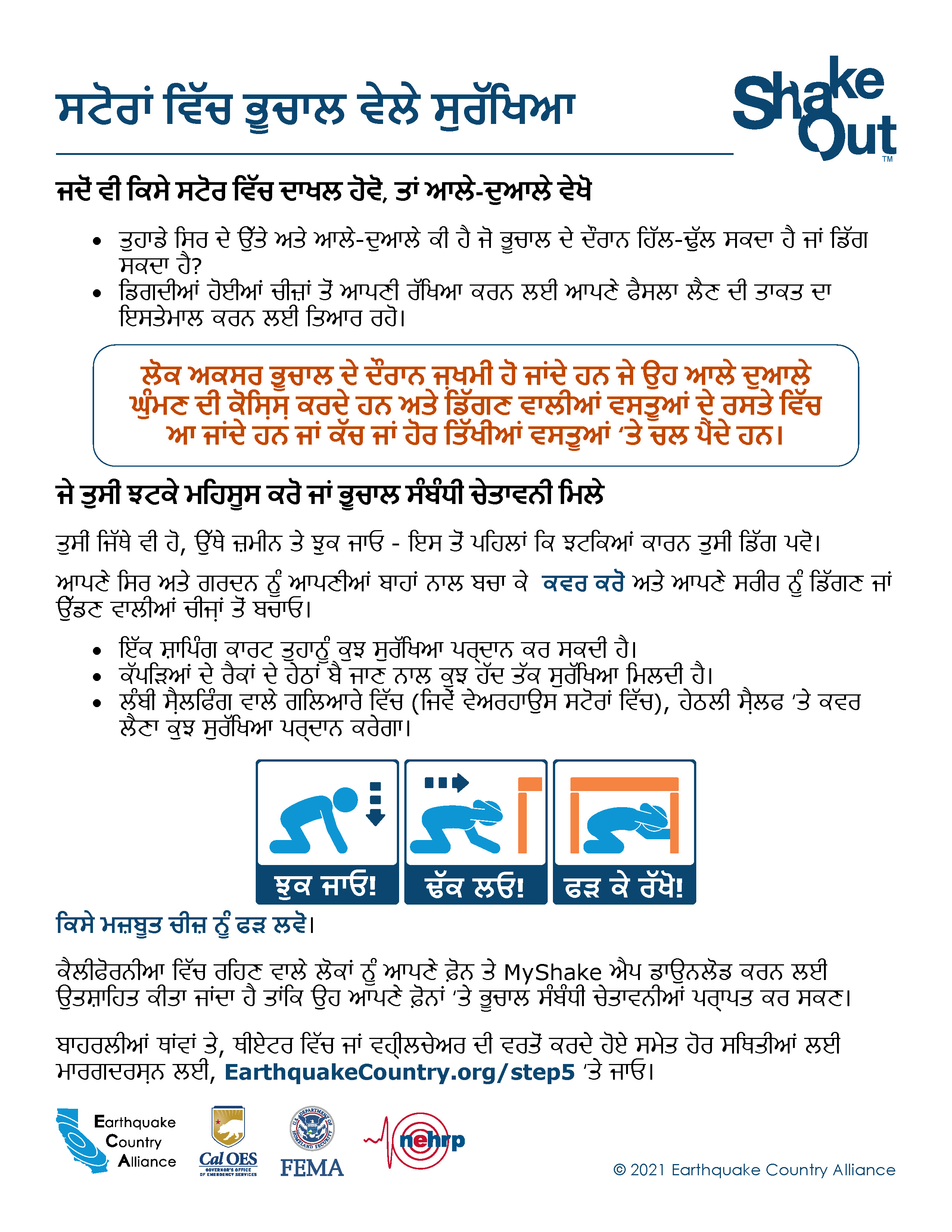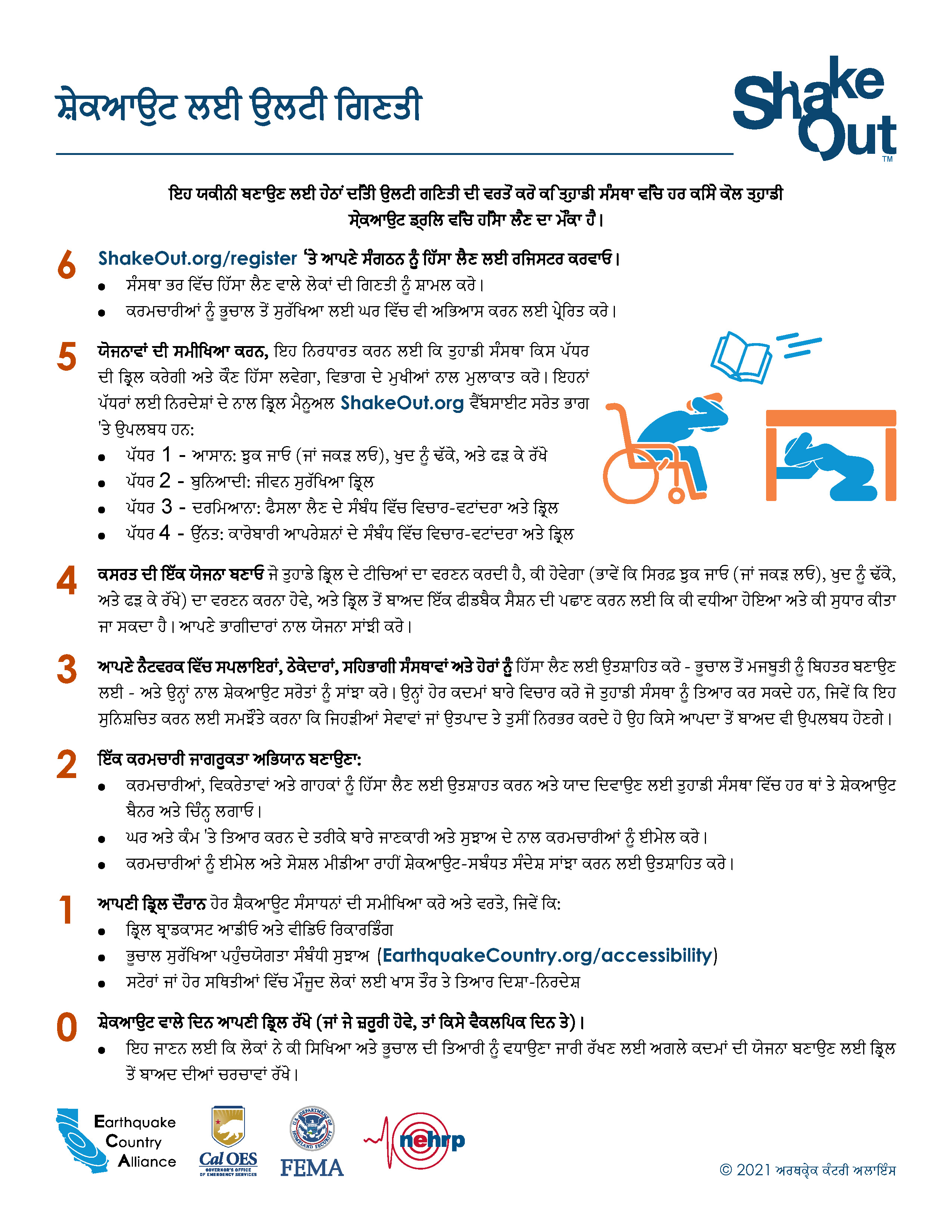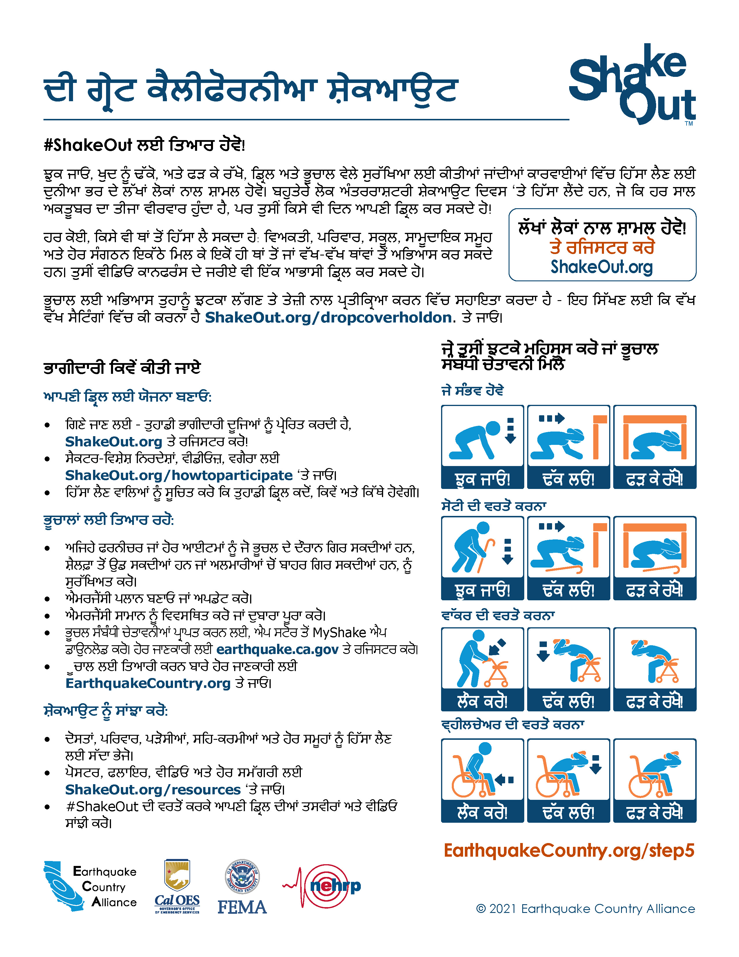 ECA has earthquake safety resources available in Punjabi, listed below. Each document is configured with alt-text and correct read order (for people who use screen reader tools).