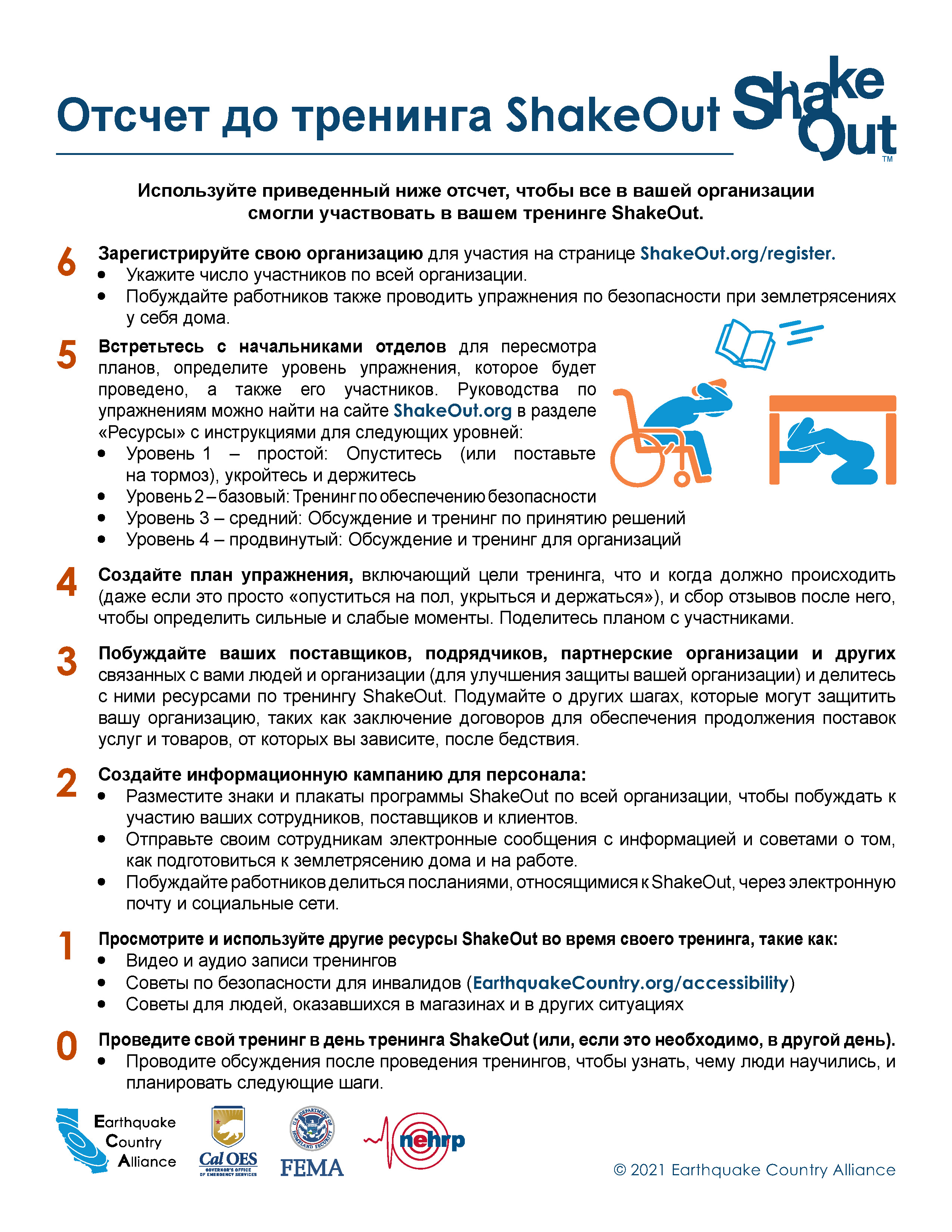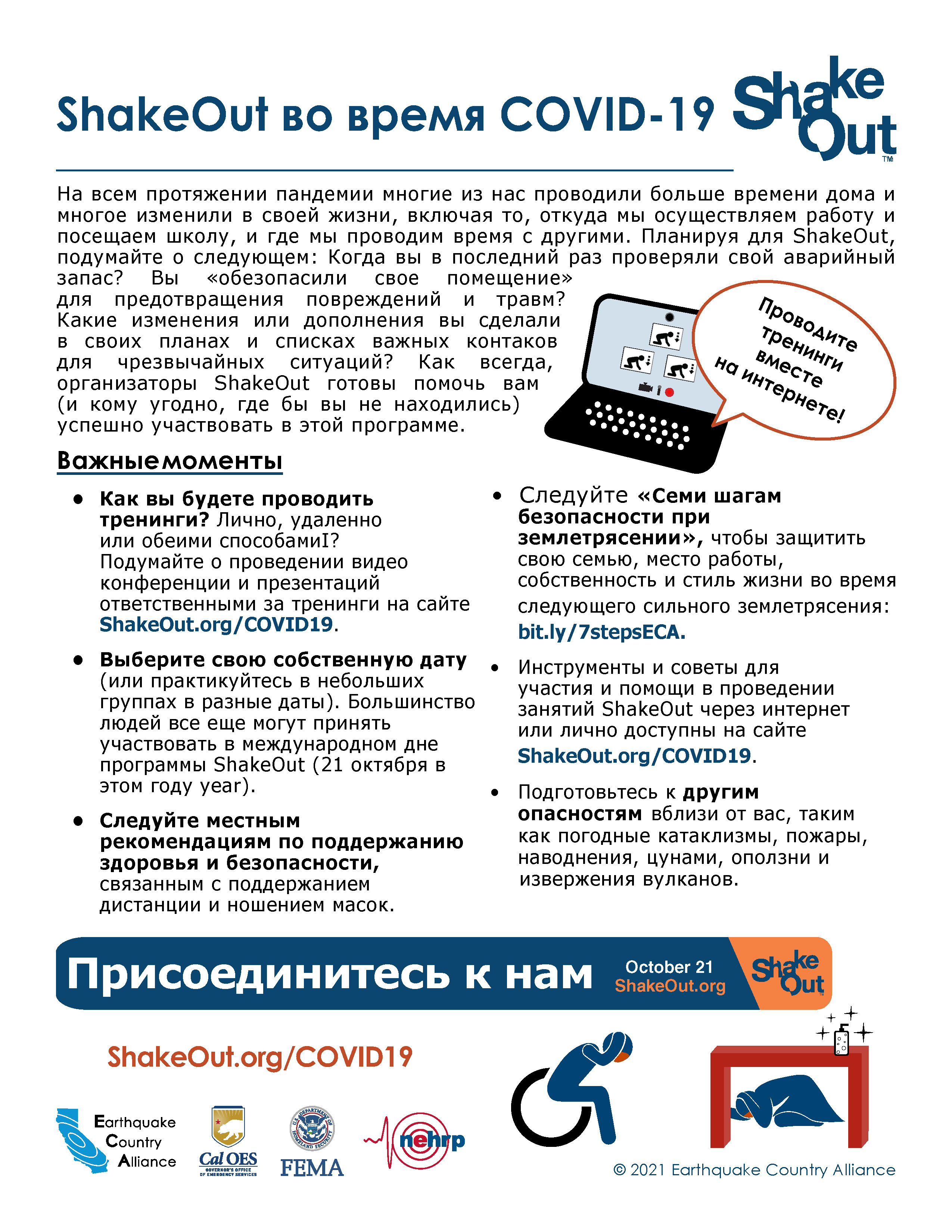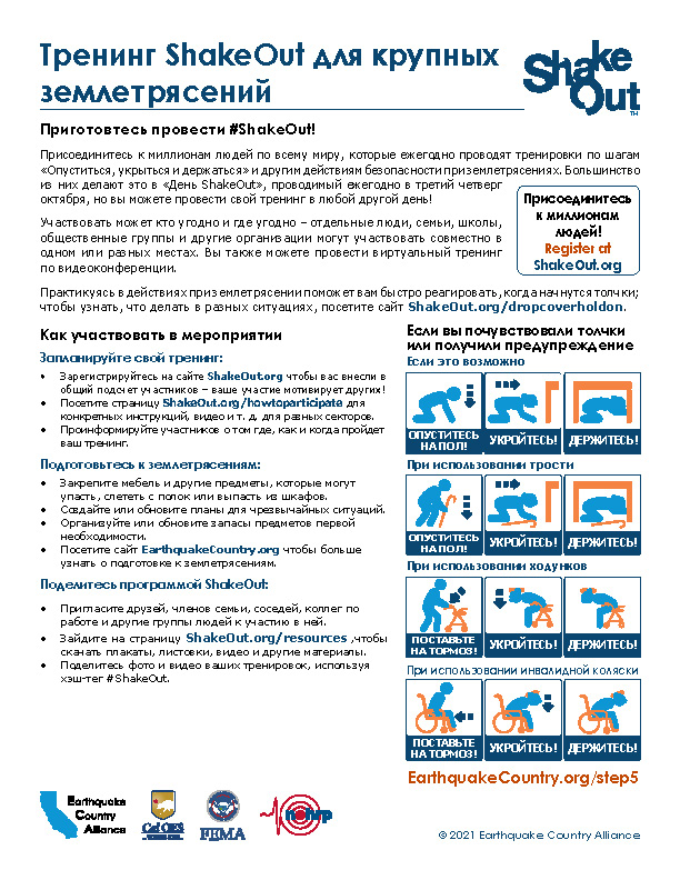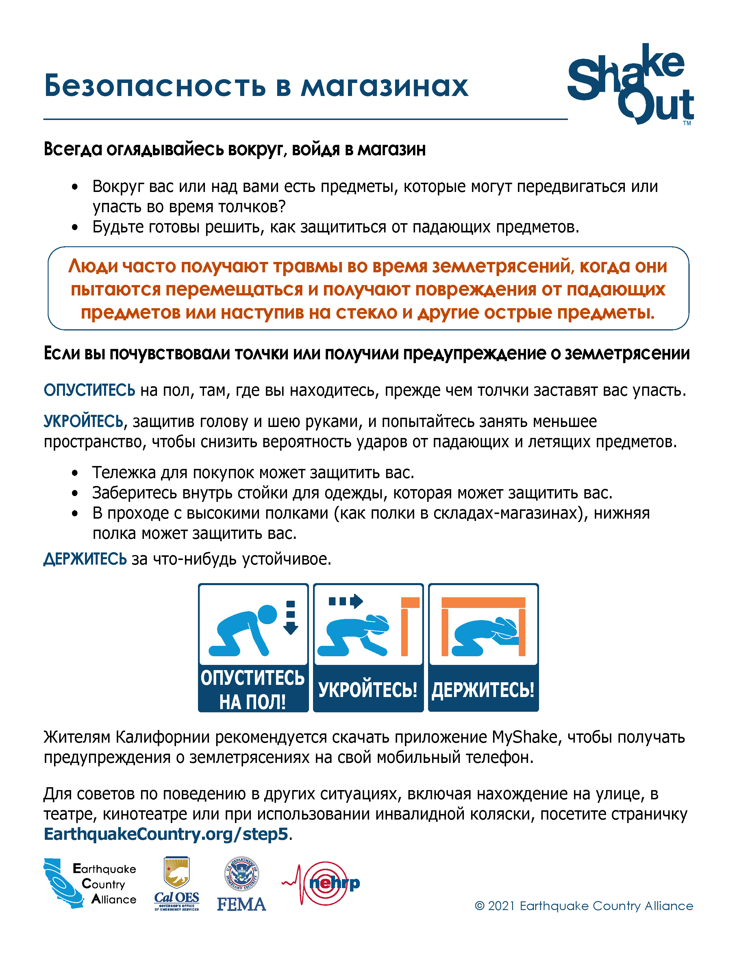 У ECA есть информационные ресурсы на русском, которые указаны ниже и которые можно скачать по адресу EarthquakeCountry.org/russian.