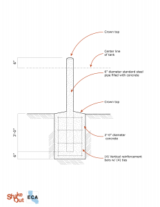 Install expansion bolts through existing brackets or provide steel pipe bollards. Steel pipe bollards are recommended for all large tanks.