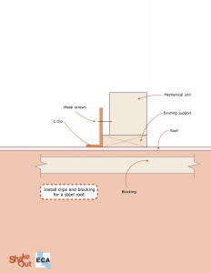 - Attach Z or L clip to mechanical unit with corresponding fasteners and attach to blocking. Place clips at 24″ on center minimum.